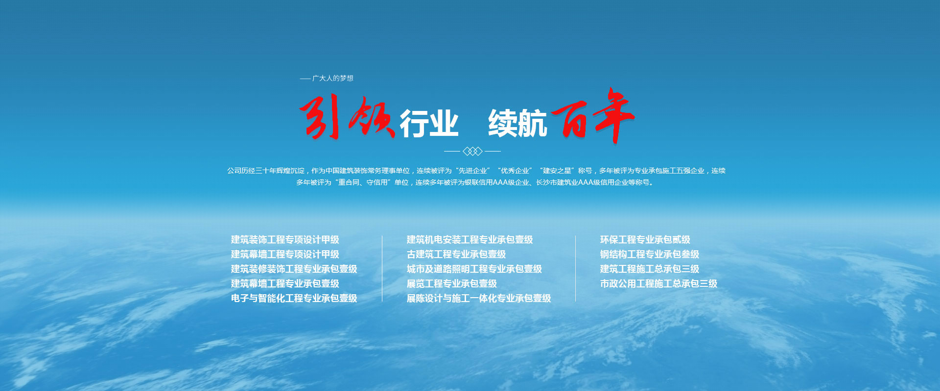 长沙q大建筑装饰有限公司是一家以建筑装饰、幕墙、工E设计、亮化、机c(din)智能化、园林等Zg业,家装、业生产、徏材销售ؓ(f)辅的大型l合企业?/p>